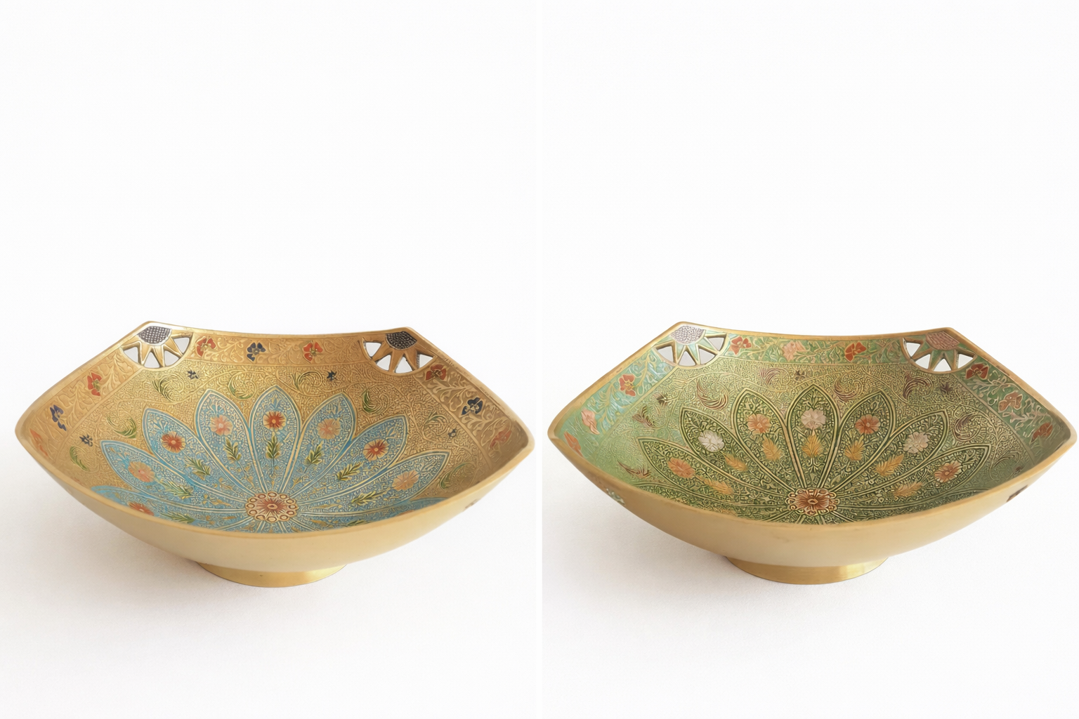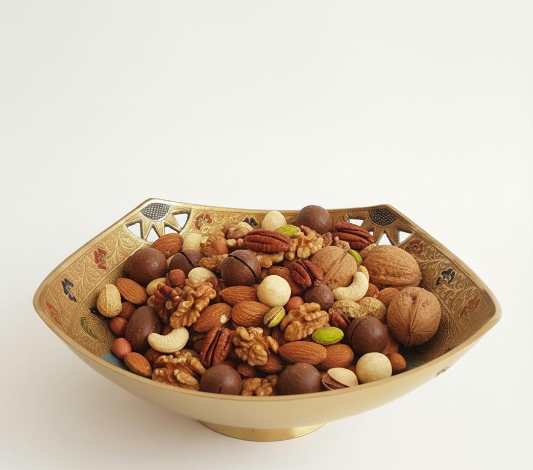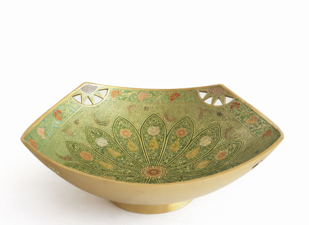 دستهبندی: محصولات برنجی و برنزیبرچسبها : ست آجیل خوری، ظروف میناکاریاندازه محصول: قطر ۲۳ سانت/ارتفاع ۸ سانتجنس بدنه: برنج