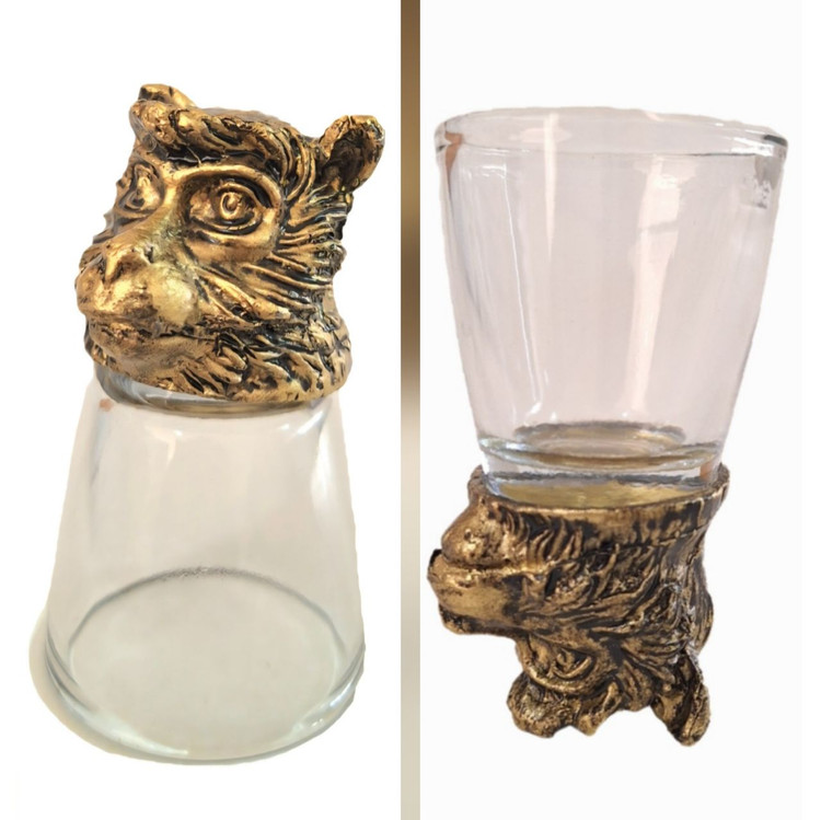 مجموعه ۶ عددی شات سر حیوان رنگ طلایی شامل حیوانات خرس،کرگدن،شیرکوهی،گرگ،میمون،اسب تمامی حیوانات جوری طراحی شدن که روی سر می ایستند و کاملا قابل استفاده است
