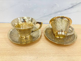 ست ۶ تایی فنجان نلبکی برنزی(برنجی) شیپوری طرح طاووس