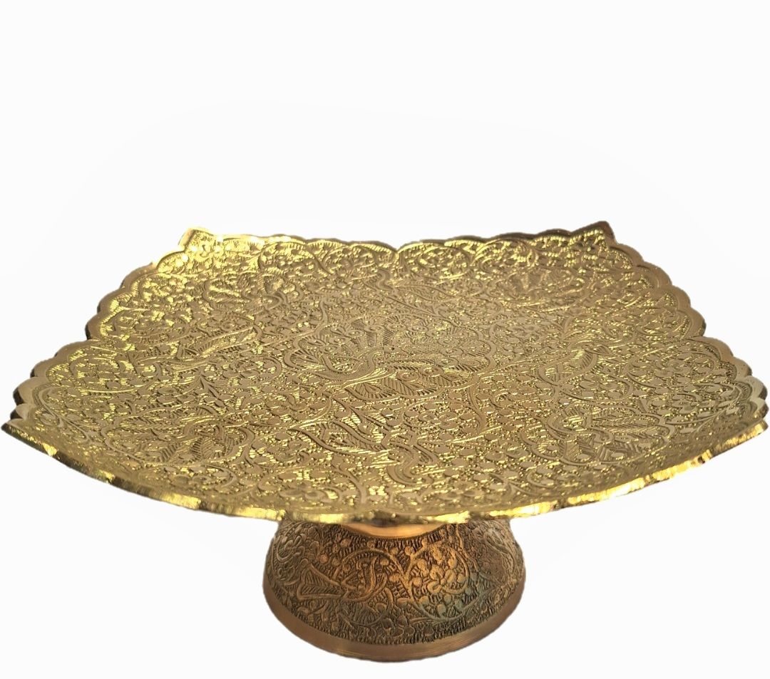 شیرینی خوری برنجی طرح لوتوس سایز 9 اینچ